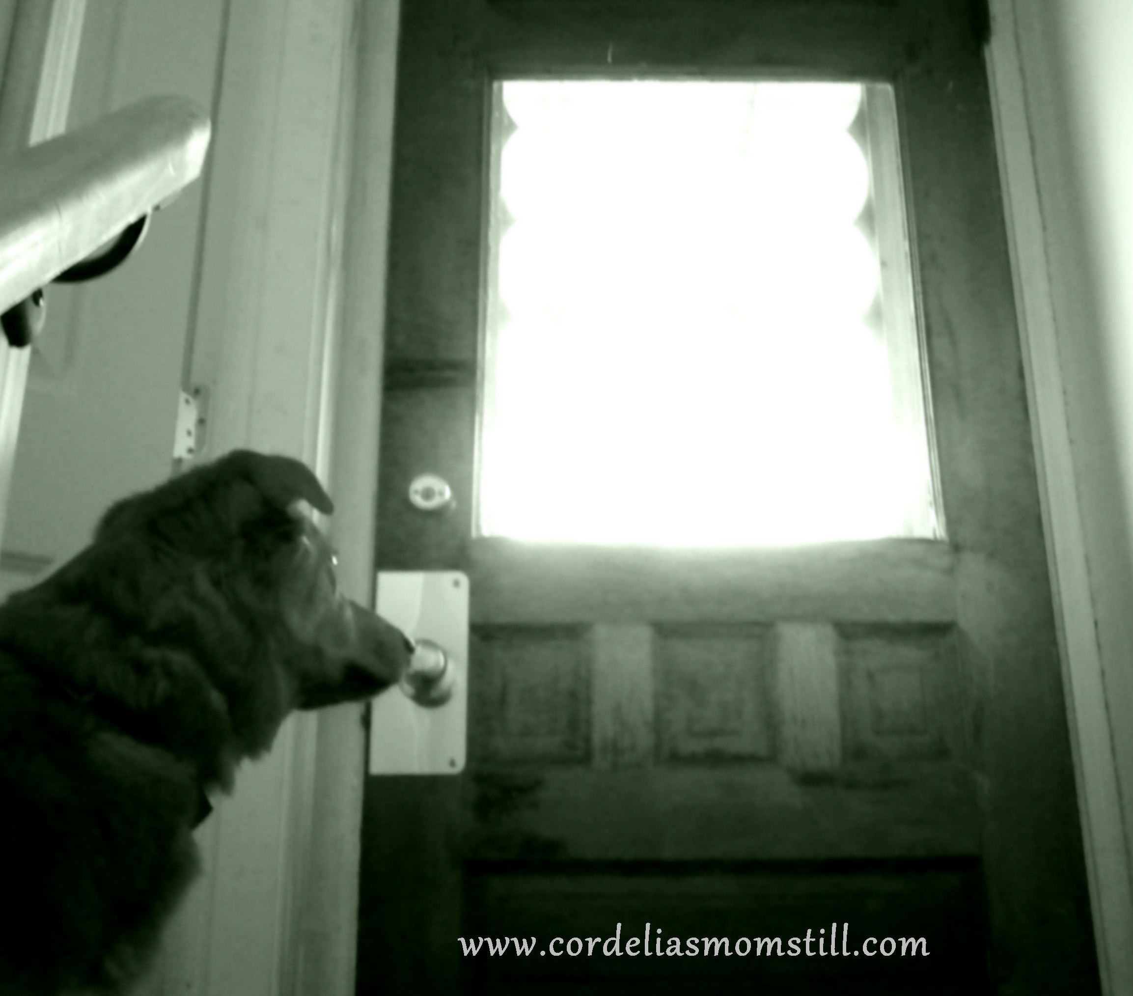Puppy Cody is now responsible for watching that side door, at least until we can find a window guard or afford a new door.  She’s not a little dog and does her job well.  Anyone who tries to shimmy through that window is going to get his (or her) face (or ass, depending on what body part comes through first) bitten off.