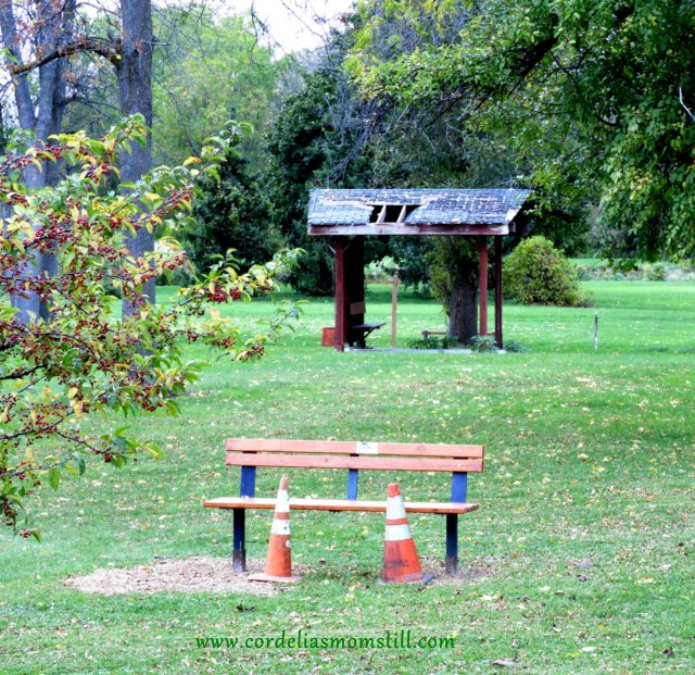 By now I was ready for a sit, and there were benches conveniently located. I decided not to use this one, because the branches were so low: