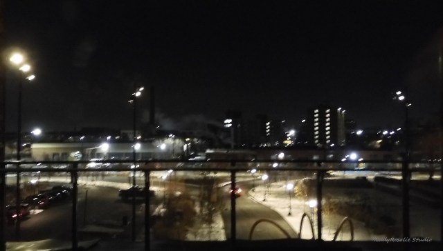 The photo at the head of this post was taken through a second-floor window onto an outdoor patio (which, of course, was closed for the season).  The view is of part of the Buffalo State College campus.  (I apologize for the blurriness, but it was night time and it was through a window from a very bright hallway behind me.  I’m sticking with that story.)