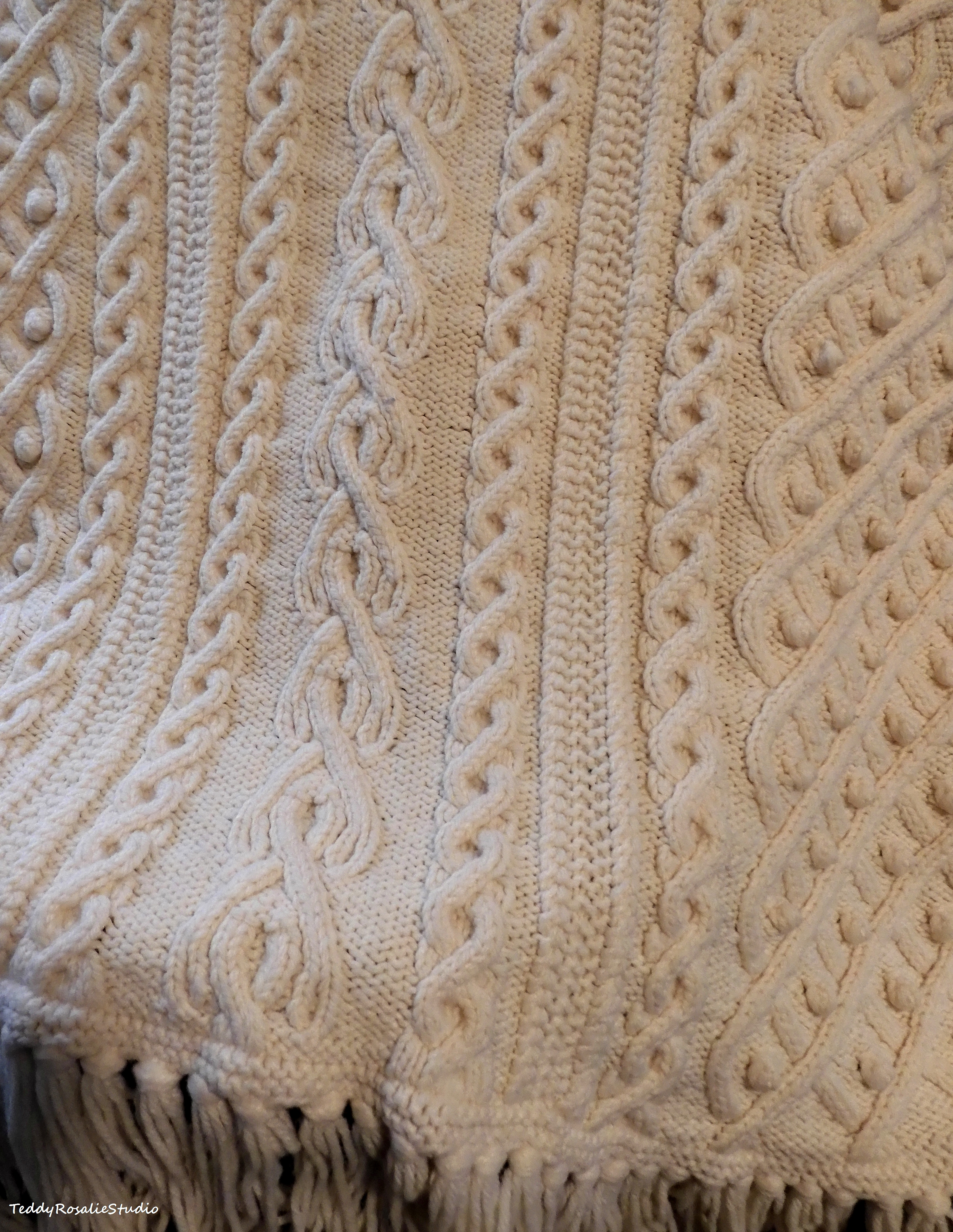 Eventually, I’ll graduate back to knitting so I can make another cable afghan like the one pictured. It’s my favorite – so warm, and so beautiful. I’d love to make one for each of my daughters.