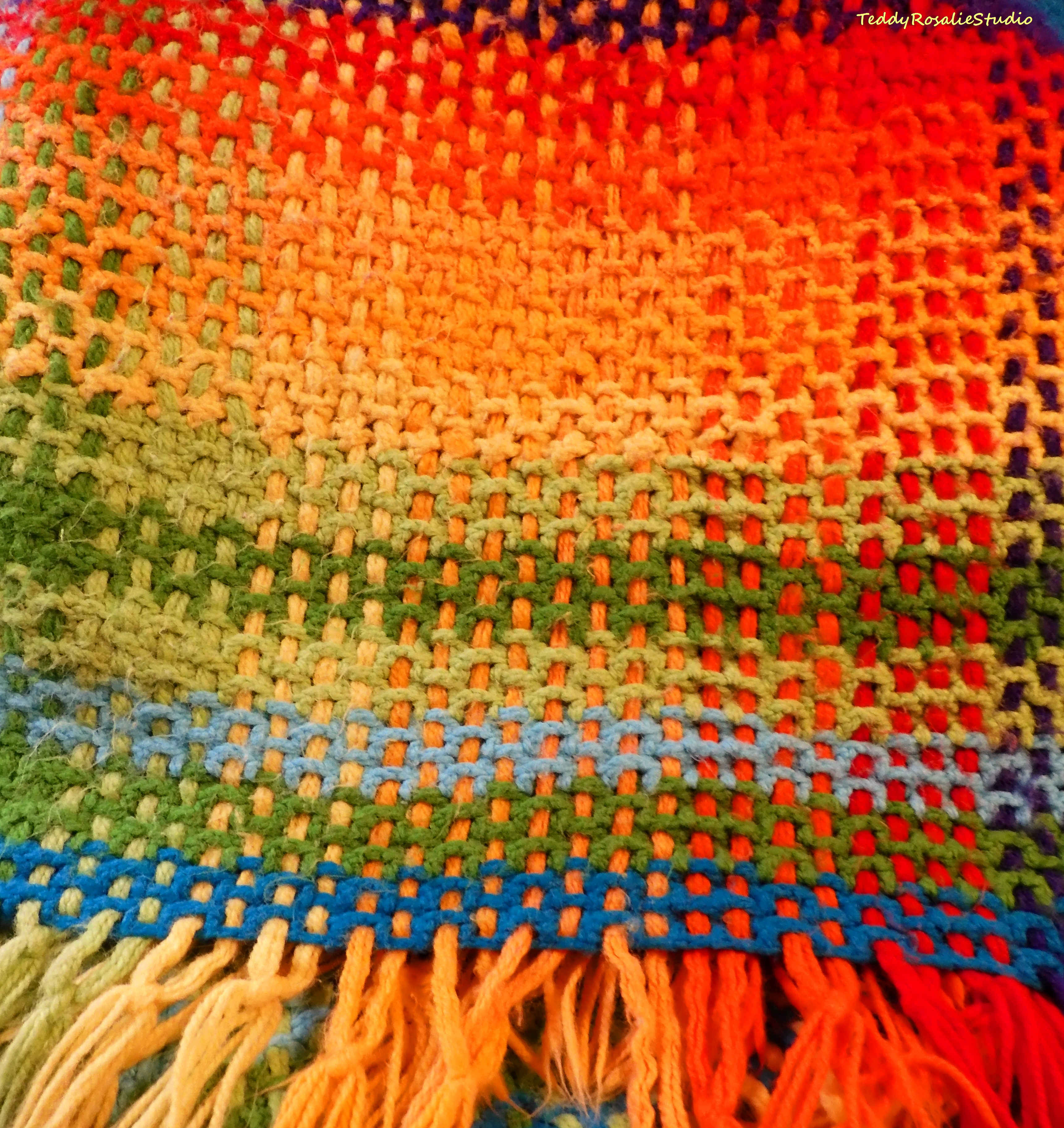 Over the years, I’ve done my share of crochet and knitting – more knitting than crochet – and then move on to some other hobby, usually involving painting with one medium or another. Two years ago I spent my evening knitting scarves, which I donated to the Salvation Army. A year and a half ago, weaving caught my eye, so now that’s what I do. But I really need to find an outlet for what I’m producing because one can only use so many woven items. I do love the creativity of it.