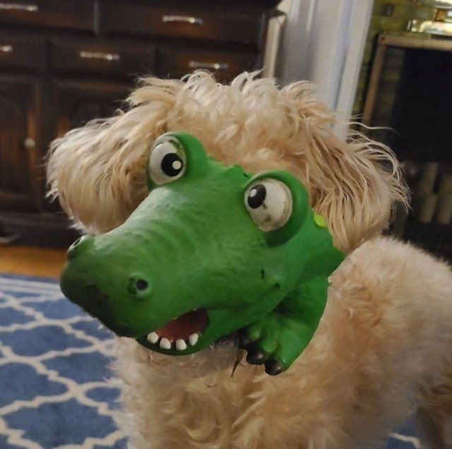 Like just managing to catch your dog with his head inside a stuffed toy (thank you, Cordelia!).